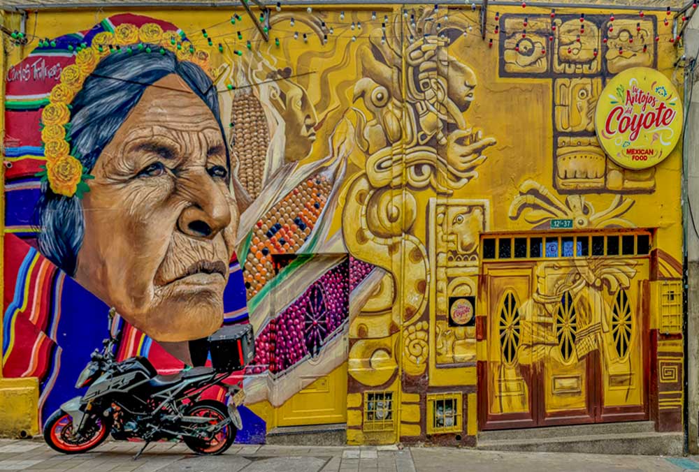 Graffiti in Bogotá startete in den 80ern mit einem „Frieden malen“-Aufruf des Präsidenten. Schon damals gab’s politische Botschaften, aber richtig abgegangen ist die Szene erst Ende der 90er und in den 2000ern.
